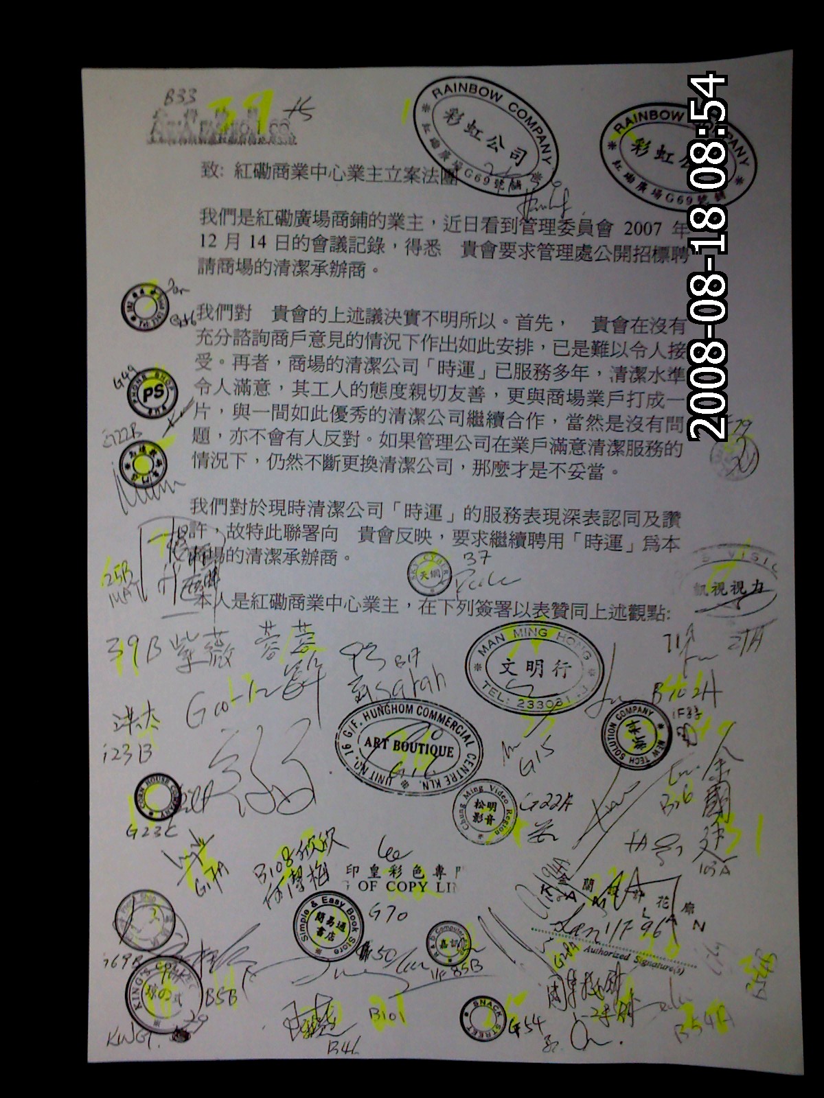 商 場商戶對清場行動意見致業主立案法團聯署信